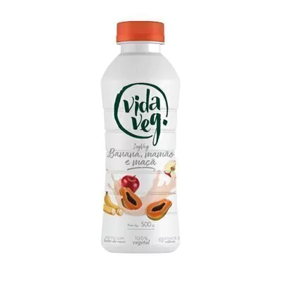 Ingredientes: água, creme de coco, açúcar orgânico, preparado de banana, mamão e maçã (água, maltodextrina, banana, maçã e mamão, amido modificado, corantes naturais antocianina e urucum, aromatizante, acidulante ácido lático e conservante sorbato de potássio), amido modificado, fibra solúvel, fosfato tricálcico (cálcio), estabilizante goma xantana, conservante sorbato de potássio e fermento.