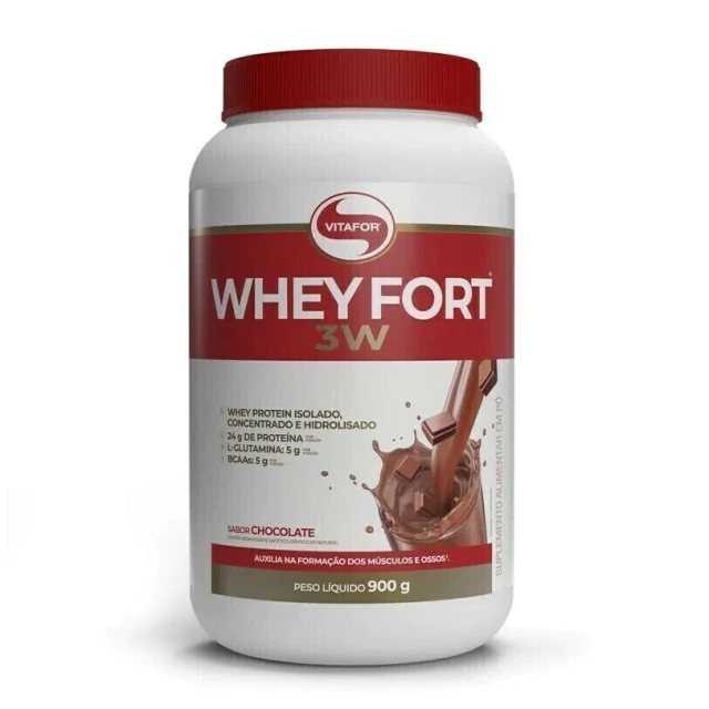 O WHEY FORT® 3W sabor Chocolate da Vitafor é um suplemento alimentar de proteínas do soro do leite que combina as formas concentrada, isolada e hidrolisada. É uma fonte de proteínas de alto valor biológico e aminoácidos, incluindo BCAA, L-glutamina e L-arginina. Auxilia na formação dos músculos e ossos, sendo indicado para o aporte proteico diário.